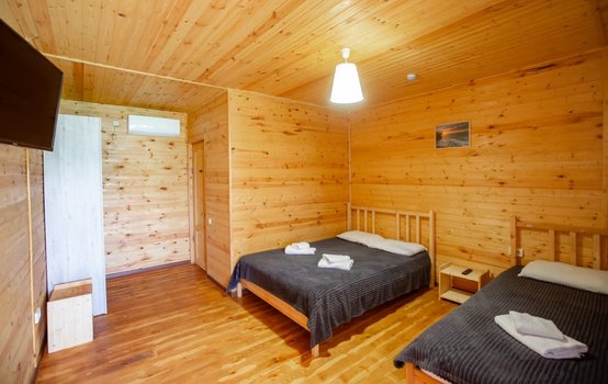 Отель "Глория" находится в Лдзаа, части Пицунды. Поблизости от отеля есть знаменитая Пицундская сосновая роща и берег моря. Центр города находится в пяти минутах езды, а железнодорожный вокзал и аэропорт Адлера — на расстоянии 60 километров. Граница с Россией расположена в часе езды от отеля. Здание отеля, выполненное из дерева, имеет три этажа и расположено на расстоянии 400 метров от моря. Отель предлагает однокомнатные номера для размещения двух, трех или четырех гостей. Комнаты оборудованы всем необходимым: есть санузел с душем, телевизор, двуспальные кровати и веранды. Все мебельные изделия выполнены из натуральных материалов. На первом этаже отеля функционирует столовая, где можно заказать завтраки, обеды и ужины. Доступ в интернет без ограничений предоставляется на всей территории. Для младших гостей обустроена игровая площадка с качелями. Также в отеле можно заказать трансфер и экскурсии к основным достопримечательностям региона, включая озеро Рицу и Новоафонские пещеры. Для гостей отеля легко доступен оборудованный песчано-галечный пляж, расположенный всего в нескольких минутах ходьбы. Представьте, что вы проводите день на морском побережье, после чего возвращаетесь в уютный номер, где можете расслабиться и отдохнуть в комфорте, наслаждаясь природой и тишиной.