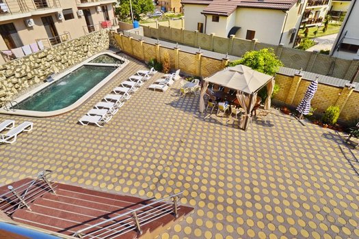 Отель «Плаза» в Витязево (Анапа) предоставляет истинное наслаждение и спокойствие на лазурном побережье. Он расположен в тихом переулке, окруженном зеленью, что создает атмосферу гармонии и уюта. В номерах отеля имеется удобная красивая мебель, жидкокристаллический телевизор, сплит-система, балкон и личный санузел. Для гостей с маленькими детьми можно запросить дополнительную кровать. В кафе отеля предлагают широкий ассортимент напитков и вкусные десерты. В обеденное и вечернее время подаются домашние блюда, приготовленные лучшими поварами. Для детей предусмотрено специальное меню. На территории отеля есть уникальный черный бассейн. Для детей оборудована игровая площадка, подходящая для всех возрастов. Вокруг отеля находится развитая инфраструктура: рынок со свежими продуктами, магазины, сувенирные лавки, аквапарк «Олимпия» и тематические рестораны. Всего за несколько минут можно дойти до благоустроенного пляжа.