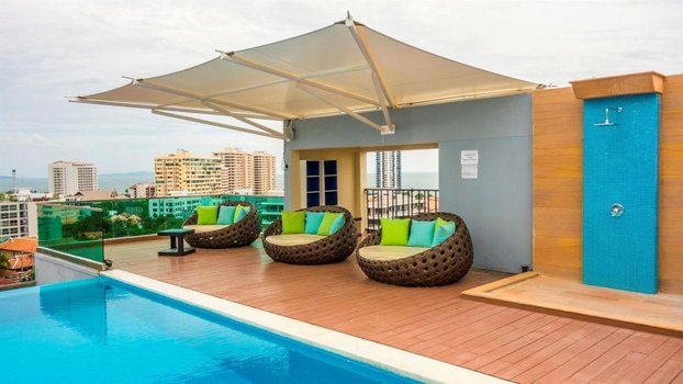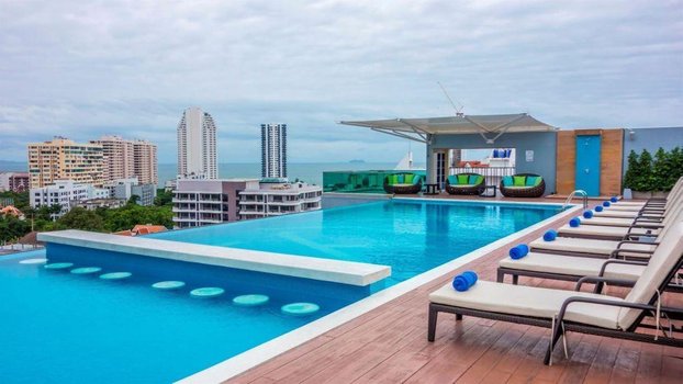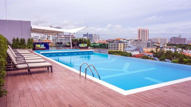 Отель находится в южной Паттайе, в тихом районе с достаточно развитой инфраструктурой. В нескольких минутах ходьбы от него расположена оживленная улица, а также ночной рынок и разнообразные кафе.В здании отеля 8 этажей, но оно стоит на возвышенности, поэтому из окон большинства номеров открываются красивые панорамы на залив Джомтьен. Номера просторные, оформлены в современном стиле, но ремонт в них уже требует обновления.Завтрак, включённый в стоимость проживания, организован здесь в виде шведского стола, а обед и ужин — по фиксированному меню и за отдельную плату. Завтраки достаточно однообразные, но в меню присутствует большое количество блюд. Кроме ресторана, на территории работает бар, где можно купить прохладительные напитки, коктейли и алкоголь.От отеля до популярного городского песчаного пляжа идти пешком 10-15 минут. Добраться до моря можно и на бесплатном автобусе, который идёт от резорта до пляжа 4 раза в день. Кроме общественного пляжа, можно добраться до пляжей острова Ко Лан на пароме или скоростном катере. Но поездка уже будет платной.На крыше резорта оборудован панорамный бассейн. Вода в нём чистая, но пахнет хлоркой. Рядом расположен детский лягушатник, бар, шезлонги и смотровая площадка. У основного корпуса резорта стоит небольшое здание, в котором находится тренажёрный зал, массажный кабинет и кофейня.Создано по заказу ООО «ОНЛАЙН ТРЕВЕЛ ГРУПП» (ОГРН 1217700445434). Автор текста Харитонова Е.А. 26.09.24.