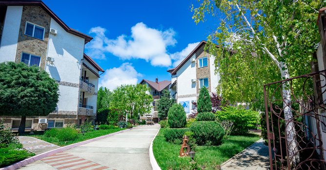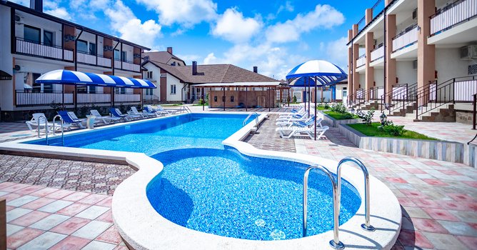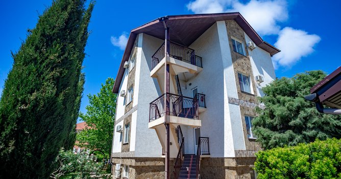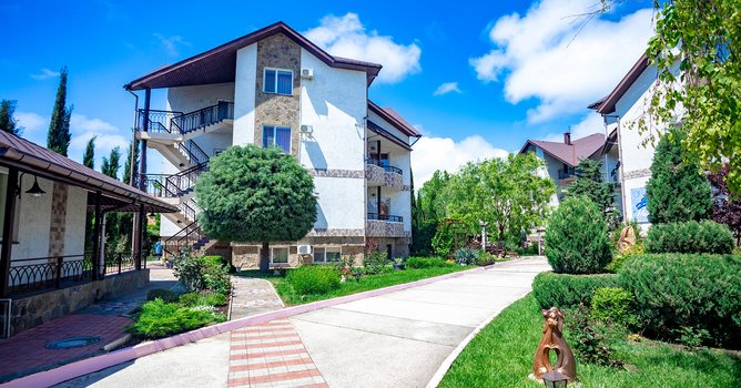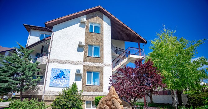 Pansionat ikkinchi qirg‘oq chizig‘ida, dengizdan 600 metr uzoqlikda, Zaozyornoye qishlog‘ida joylashgan. Yevpatoriya markazigacha bo‘lgan masofa 12 km. Piyoda borish masofasida dorixona, oziq-ovqat va maishiy mollardan iborat do‘konlar, bolalar attraksionlari, kafe va qishloq naberejhnoyi mavjud. Pansionat hududi qo‘riqlanadigan uchta to‘rt qavatli kottej (har birida 12 ta xona) va ikkita ikki qavatli binodan (mos ravishda 16 va 20 ta xona) iborat. Barcha xonalar o‘rnatilgan mebellar, hojatxona, televizor va konditsioner bilan jihozlangan. Mehmonlar uchun qulaylik yaratish maqsadida pansionatda ikkita keng ovqatlanish zallari, shuningdek, basseyn yonidagi yozgi bar mavjud bo‘lib, unda mangal taomlari, muzqaymoq, kokteyl va sovuq ichimliklar taklif etiladi. Pansionat hududida ikkita bolalar maydonchasi, bolalar xonasi, katta shaxmat, bilyard xonasi, velosiped va bolalar skuterlari ijarasi, sport zali, ochiq havoda mashqlar uchun simlarlar, massaj kabineti, go‘zallik studiyasi, ayvonlar, skameykalar va tungi chiroqli favvora bilan liliya hovuzi mavjud. Tabiiy isitiladigan ikkita ochiq basseyn kattalar va bolalar uchun mo‘ljallangan bo‘lib, ular yonida shezlong va soyabonlar joylashgan. Shuningdek, hududda universal sport maydonchasi va stol tennisi uchun stollar bilan shatr mavjud. Pansionat kechayu kundiz qo‘riqlanadi, bu har qanday yoshdagi bolalar bilan dam olishni xavfsizligini ta‘minlaydi. Bu pansionatda dam olishni tasavvur qiling. Ertalab dengizga yurish, kunduzi basseynda cho‘milish yoki simlarda sport bilan shug‘ullanish mumkin. Kechasi yoritilgan hududdagi sayr va liliya hovuzi yonida dam olish. Do‘konlar va kafelarga yaqinlik dam olishni qulay va yoqimli qiladi.