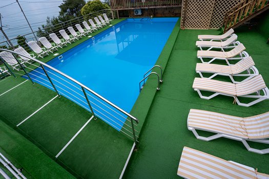 "Quyosh" pansiyati Sovuq daryo qishlog'ida, Rossiya chegarasi yaqinida, Gagradan atigi 14 km uzoqlikda joylashgan. Bu joy bolali oilalar uchun qulayligi va arzonligi tufayli ideal dam olish maskani hisoblanadi. Pansiyat hududi 1,5 gektarni egallab, unda kichik kotajlar va sayr qilish uchun ko'p manzarali joylar mavjud. Plyaj maxsus jihozlangan tunnel orqali bir necha daqiqalik piyoda masofada joylashgan. Bu toshli plyajda kiyinish kabinalari, soyabonlar va шезлонglar mavjud, dengizga kirish yotiq. Plyajda katamaranlar, sayr qayiqchalari, yaxtalar, skuterlar va bananlar kabi turli xil o'yin-kulgi turlari mavjud. Pansiyatda "shved stoli" tizimida kuniga uch marta ovqatlanish taklif etiladi. Shuningdek, plyajda bar va kafe mavjud. Bolalar uchun bog', o'yin maydonchasi va plyajda animatorlar bilan ko'ngilochar dasturlar tashkil etiladi. Kattalar uchun ekskursiyalar, kechki karaoke va diskotekalar taklif etiladi. Shuningdek, pansiyat hududida bilyard, kinoteatr, tennis korti va voleybol maydoni mavjud. Agar siz "Quyosh" pansiyatida bo'lsangiz, plyajda tinch dam olish, faol dam olish turlari va qiziqarli ekskursiyalardan bahramand bo'lishingiz mumkin. Gagra va uning diqqatga sazovor joylari, jumladan, mashhur Stalin dachasi, 15-20 daqiqalik masofada joylashgan. Pansiyat yaqinida do'konlar va dorixona mavjud, shahar bozoriga esa pansiyat oldidagi bekatdan marshrutka orqali osongina borish mumkin.