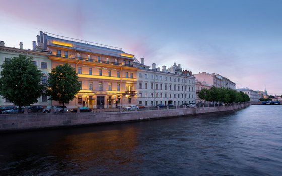 "Domina St.Petersburg" mehmonxonasi Moyka daryosi qirg'og'ida, Isakiyevskiy soboriga atigi ikki daqiqalik piyoda masofada joylashgan. Mariinskiy teatriga, Ermitajga va Nevskiy prospektiga taxminan bir kilometr masofa bor. Mehmonxona xonalari noyob uslubda bezatilgan va ish stollari, seyflar va sun'iy yo'ldosh kanallari bilan jihozlangan yassi ekranli televizorlar bilan ta'minlangan. Hammom xonalarida xalat va shippaklar mavjud. "Arcobaleno" restorani italyan oshxonasi va bosh oshpazning fusion taomlarini taklif etadi. "Nove" kokteyl bari turli tadbirlarni, jumladan jonli musiqali kechalar, kinoseanslar, mavzuli kechalar va sharob va gastronomiya bo'yicha ustaxonalarni tashkil qiladi. Mehmonxona "Isakiyevskaya ploshchad" avtobus bekatiga yaqin joyda joylashgan bo'lib, u erdan Moskva temir yo'l vokzaliga qatnovsiz borish mumkin. Pulkovo aeroportiga avtomobil bilan 30 daqiqada yetib borish mumkin. Agar siz bu mehmonxonada qolgan bo'lsangiz, Sankt-Peterburgning eng yirik diqqatga sazovor joylariga osongina piyoda borishingiz mumkin bo'lardi. Mehmonxonaga qaytganingizda, xonangizning qulayligi va farovonligidan bahramand bo'lishingiz, restoran yoki barda dam olishingiz va kulinariya hamda madaniy dasturlardan zavqlanishingiz mumkin.