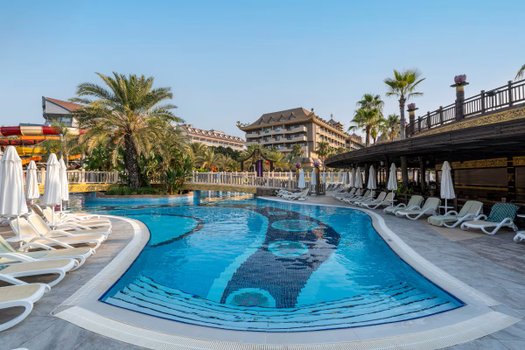 Восточная атмосфера этого отеля несравненна. Интерьер и уникальные элементы декора создают неповторимую обстановку. Отель отлично подходит для семейного отдыха с детьми. На его территории есть детский клуб, бассейн и даже свой луна-парк, посещение которого не требует дополнительной оплаты. Сад отеля прекрасен. Аллеи, пролегающие через него, ведут прямо к песчаному пляжу. На территории отеля расположено 5 бассейнов, каждый из которых уникален по своему дизайну. Архитектура отеля поражает своей изысканностью и разнообразием. А посетителям предлагается широкий выбор экзотической еды. Специальное внимание заслуживает амфитеатр отеля. Здесь профессиональная труппа артистов регулярно устраивает захватывающие шоу-программы. Представьте, как вы просыпаетесь в одном из номеров этого отеля. Вы выходите на панорамный балкон и видите перед собой открытый пейзаж: пальмы, бассейны, аллеи, ведущие к пляжу. Вы спускаетесь вниз, где на вас уже ждут разнообразные блюда от шеф-повара. После завтрака вы отправляетесь в луна-парк с детьми или наслаждаетесь спокойствием в одном из бассейнов. Вечером вы посещаете шоу в амфитеатре, где артисты удивляют вас своим мастерством и талантом. Этот отель действительно предлагает всё для незабываемого отдыха.