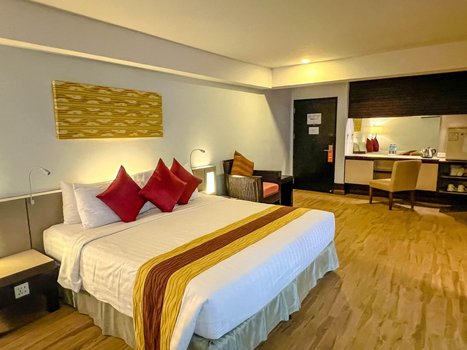 Патонг Резорт — отличный выбор для гостей Патонга. Семейная атмосфера и множество полезных услуг сделают пребывание здесь приятным. Номера оснащены телевизорами с плоским экраном, кондиционерами и холодильниками. Wi-Fi доступен для удобного выхода в интернет. Гостям предлагаются обслуживание номеров, услуги консьержа и терраса на крыше. Также в распоряжении гостей бассейн и завтрак. Рядом с отелем находятся такие достопримечательности, как Bangla Boxing Stadium (0,1 км) и Patong Mosque (1,1 км), что делает его удобным для осмотра популярных мест. Близко расположены рестораны азиатской кухни, такие как Baan Rim Pa Patong, No.6 Restaurant и Naughty Nuri's, где можно насладиться вкусной едой. Для тех, кто хочет исследовать Патонг, в пешей доступности находятся пляж Патонг (0,4 км), улица Бангла Роуд (0,4 км) и Patong Boxing Stadium (0,6 км). Представьте, что вы остановились в Патонг Резорт. Утром вы просыпаетесь в уютном номере с видом на город, затем завтракаете у бассейна. После этого вы отправляетесь на прогулку по пляжу Патонг, наслаждаетесь морем и солнцем. Вечером вы возвращаетесь в отель, чтобы расслабиться на террасе и насладиться закатом.